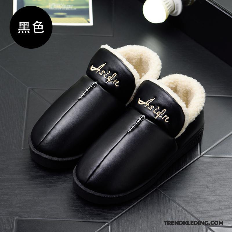 Pantoffels Heren Waterdicht Warm Dikke Zool Winter Antislip Herfst Zwart