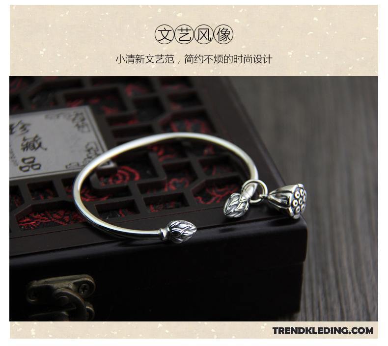 Armband Dames Met De Hand Bloemen Armbanden Zuiver Moeder Vintage Zilver
