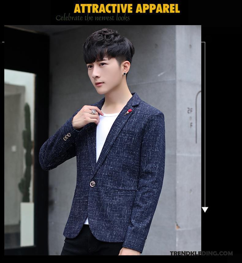 Blazer Heren Trend Voorjaar Casual Jeugd Mannelijk Slim Fit Blauw