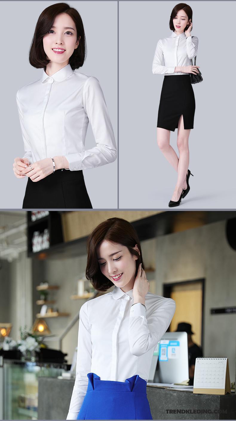 Blouse Dames Slim Fit Overhemd Werk Onderhemd Voorjaar Geklede Blauw Wit Licht