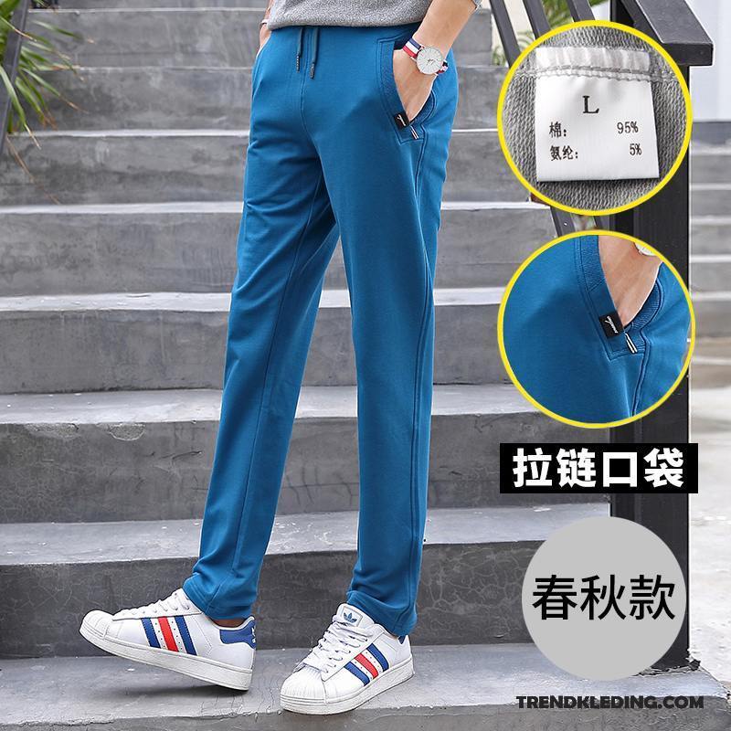 Broek Heren Zomer Voorjaar Trend Rechtdoor Elastiek Mannelijk Blauw