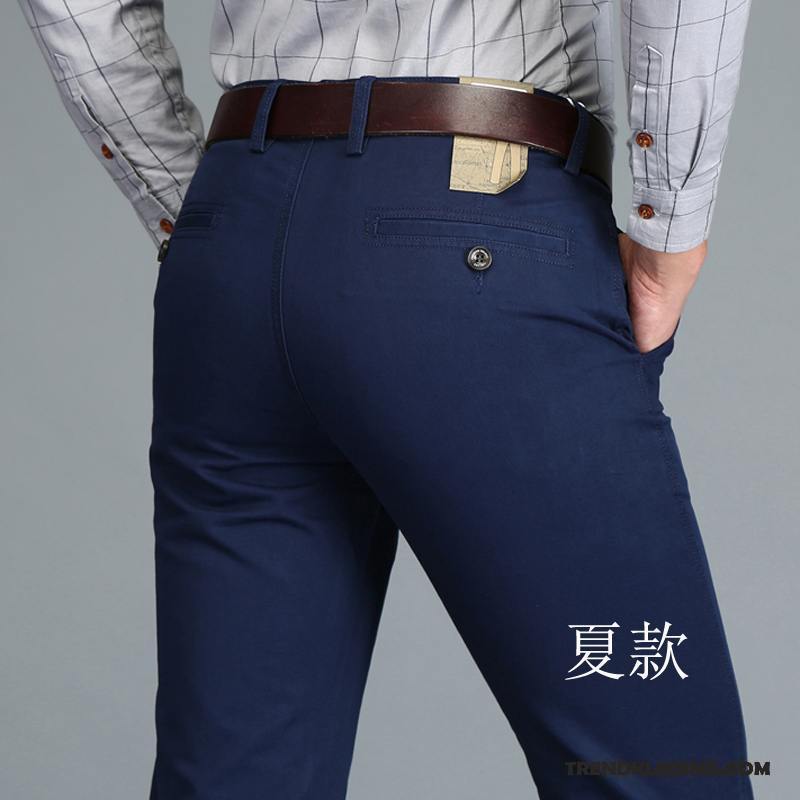 Broek Heren Brits Elastiek Trend Slim Fit Mannelijk Voorjaar Blauw