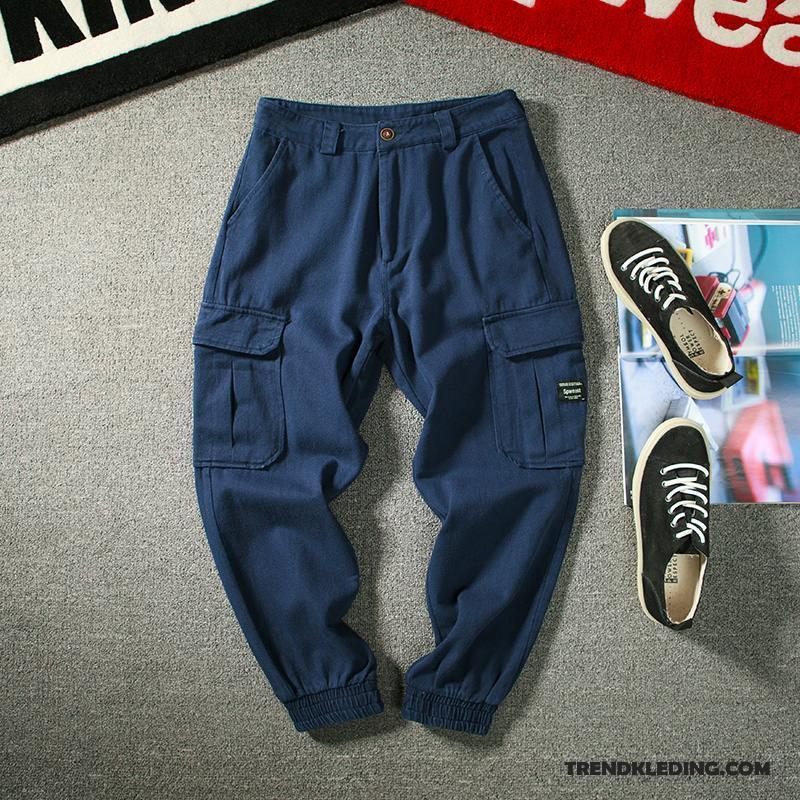 Cargobroek Heren Rechtdoor Herfst Slim Fit Jeugd Elastiek Cargo Broek Marineblauw Effen Kleur