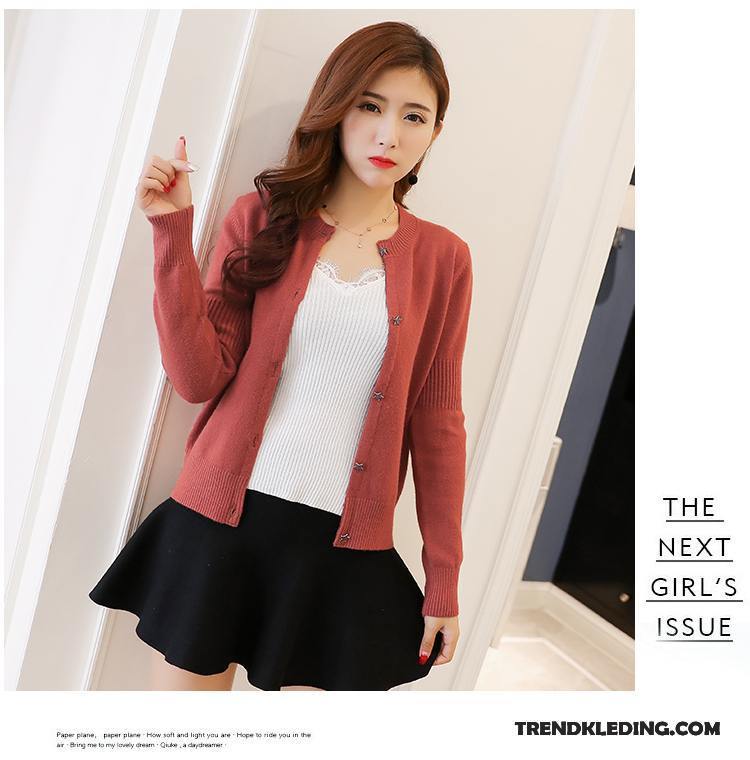 Gebreid Vest Dames Ronde Hals Voorjaar Jas Zomer Kort Dun Rood