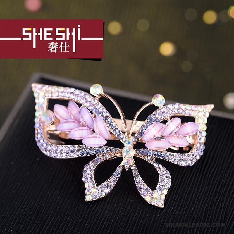 Haarspeld Dames Bloemen Haarclip Strass Accessoires Vlinderdas Veerklemmen Roze