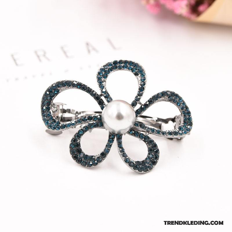 Haarspeld Dames Groot Veerklemmen Haaraccessoires Strass Bloemen Pauw Blauw