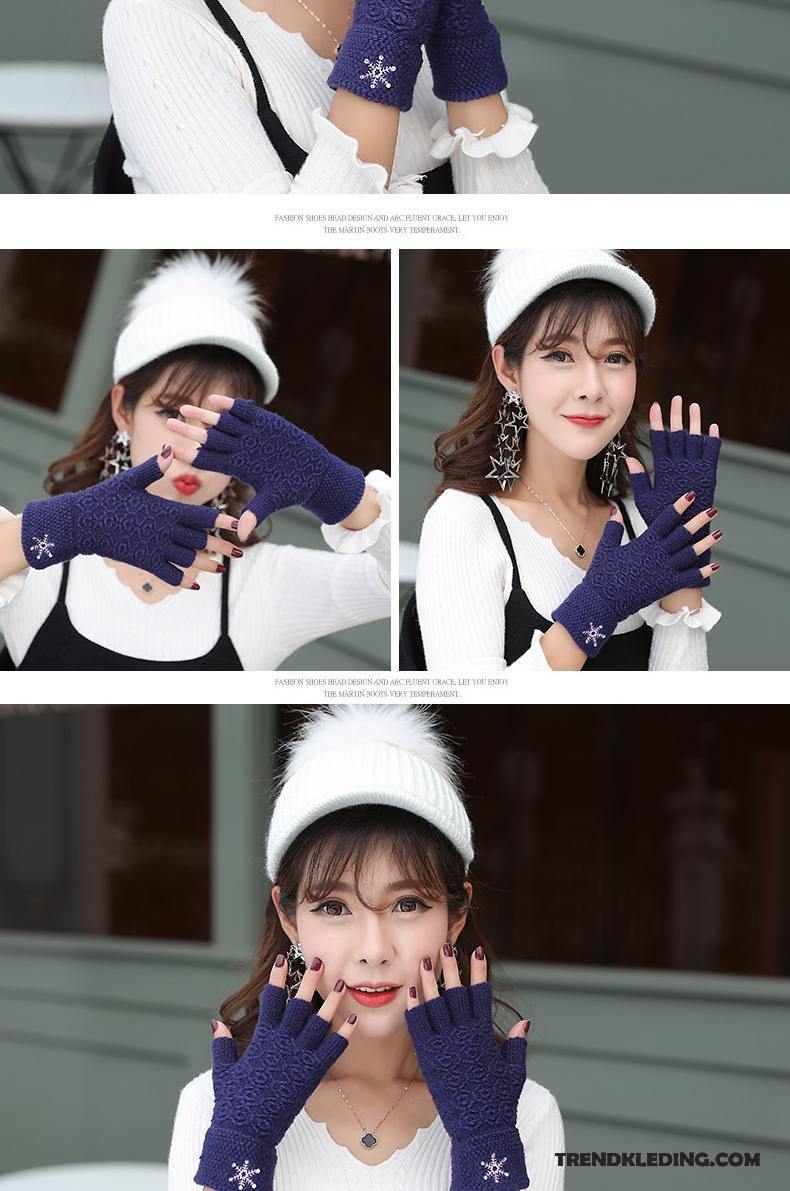 Handschoenen Dames Halve Vinger Breien Student Winter Blijf Warm Wollen Effen Kleur