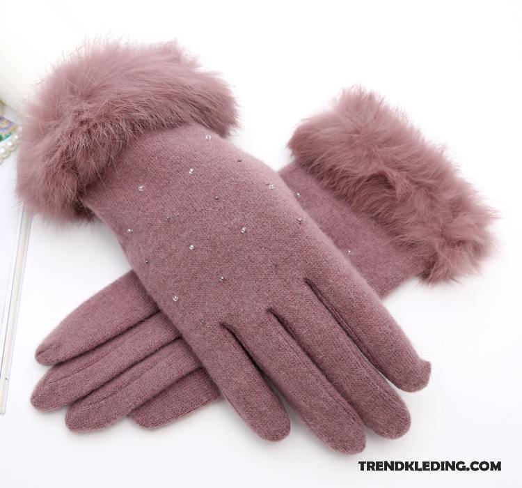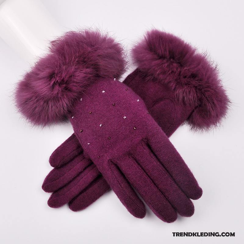 Handschoenen Dames Winter Schattig Herfst Doek Blijf Warm Wol Purper