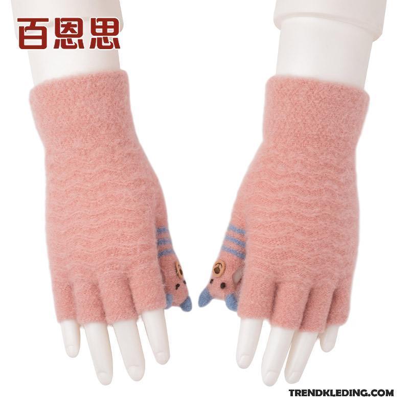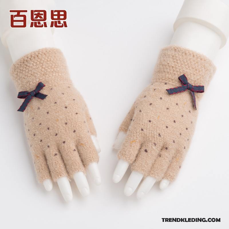 Handschoenen Dames Winter Student Halve Vinger Wollen Schattig Blijf Warm Donkerblauw