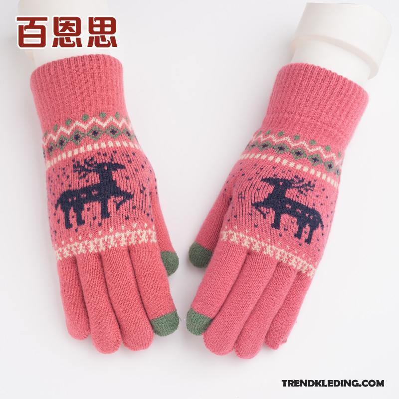 Handschoenen Dames Pluche Winter Verdikken Konijnenbont Doek Autorijden Roze
