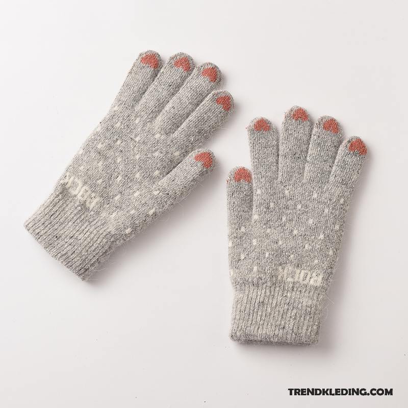 Handschoenen Dames Herfst Breien Wollen Winter Outdoor Blijf Warm Wit Beige