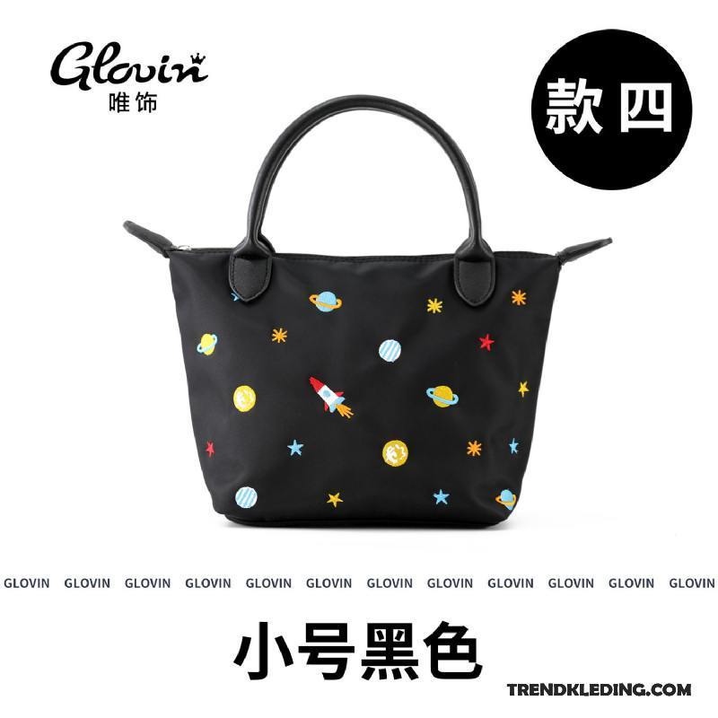 Handtas Dames Schoudertas Doek Geborduurde Nylon Oxford Cartoon Zwart