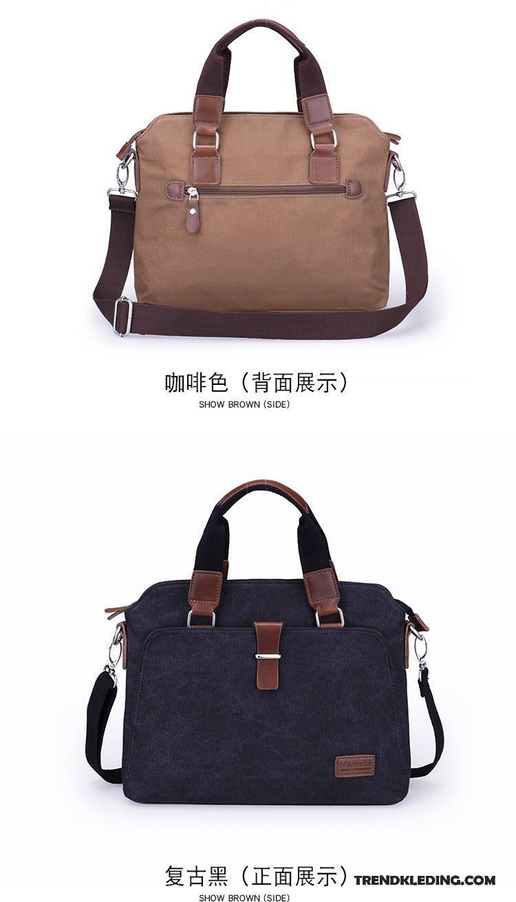 Handtas Heren Schoudertas 14 Inch Business Messenger Tas Casual Canvas Donkerblauw