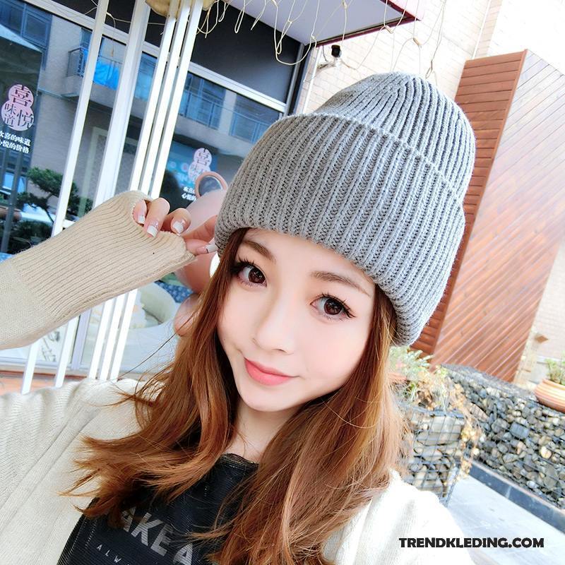 Hoed Dames Alle Wedstrijden Herfst Schattig Mode Student Breien Grijs