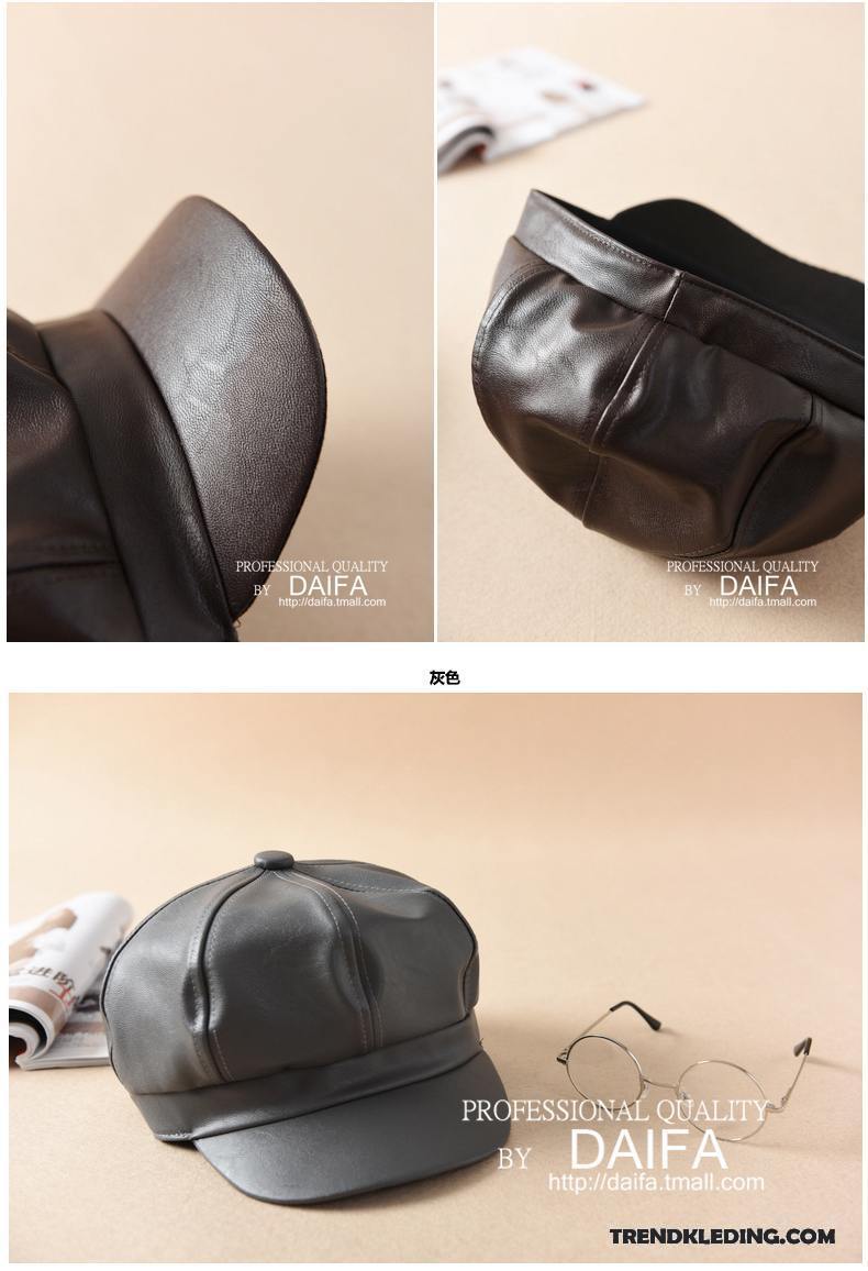 Hoed Dames Winter Herfst Leer Schilder Heren Borduurwerk Zwart