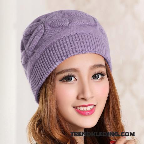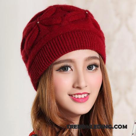 Hoed Dames Mode Herfst Breien Muts Pluche Blijf Warm Winter Rood