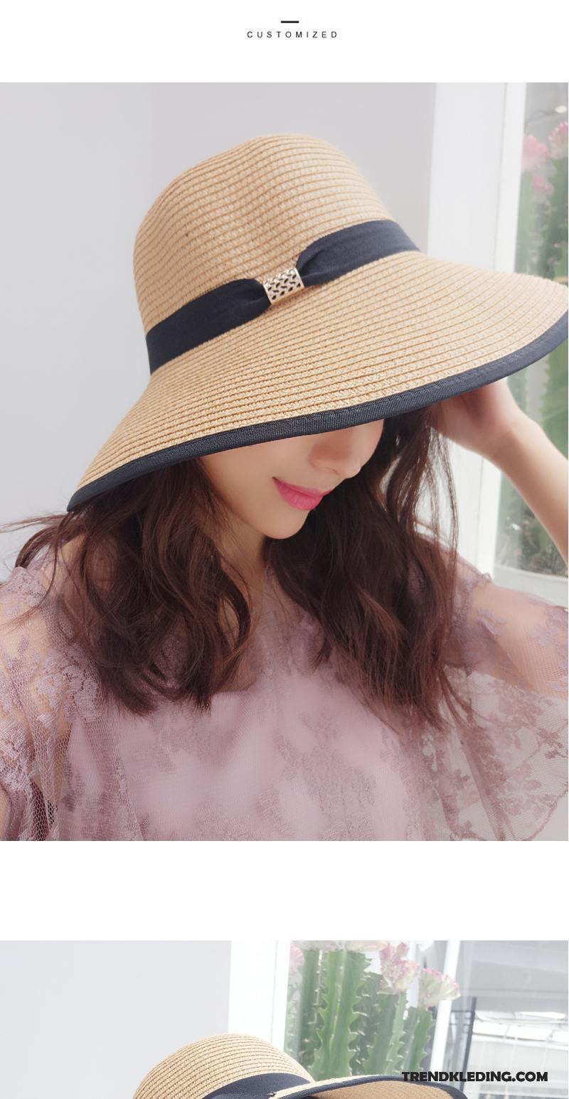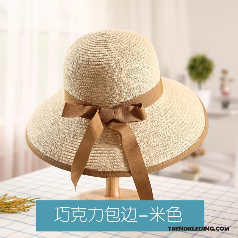 Hoed Dames Reis Brits Strohoed Zonnehoeden Vouw Groot Zandkleur Wit