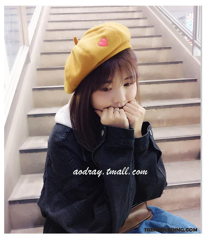 Hoed Dames Trend Liefde Schilder Borduurwerk Winter Herfst Geel