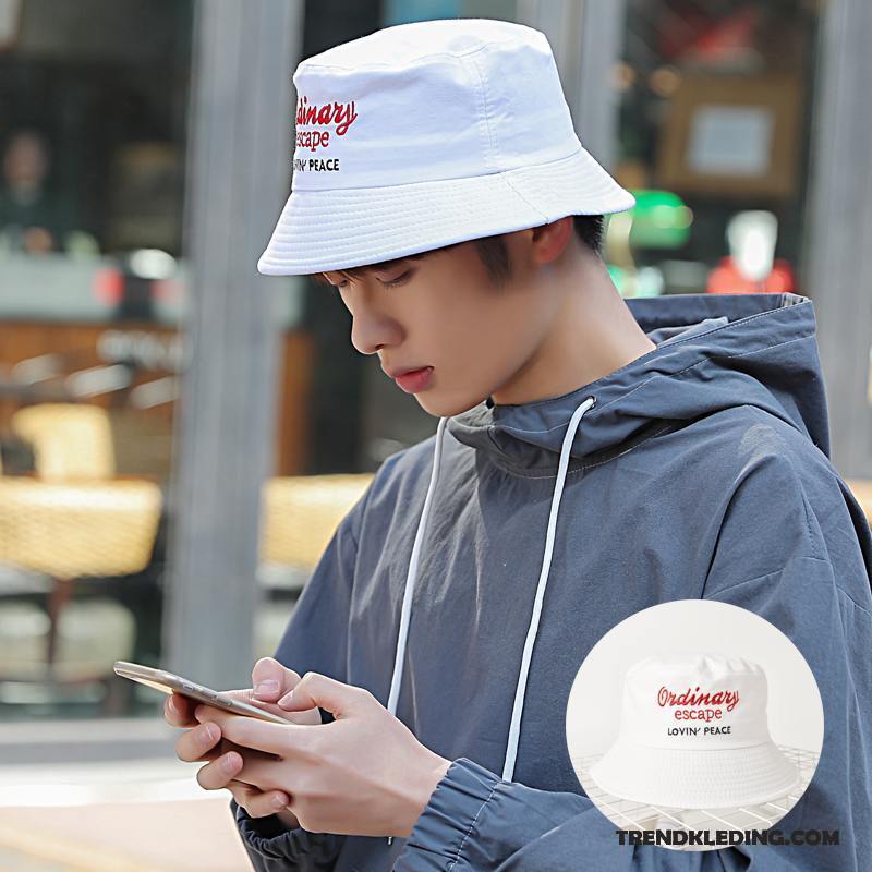 Hoed Heren Casual Vissersmuts Zon Trend Dames Straat Wit