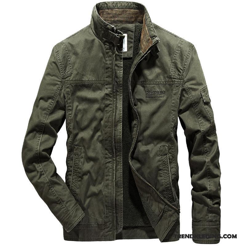 Jassen Heren Katoen Jack Casual Trend Herfst Dunne Zwart Groen