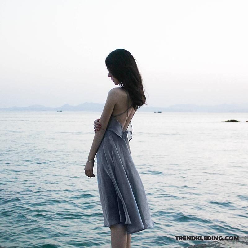 Jurk Dames 2018 Bretels Dunne Strand Zomer Reis Zandkleur Beige