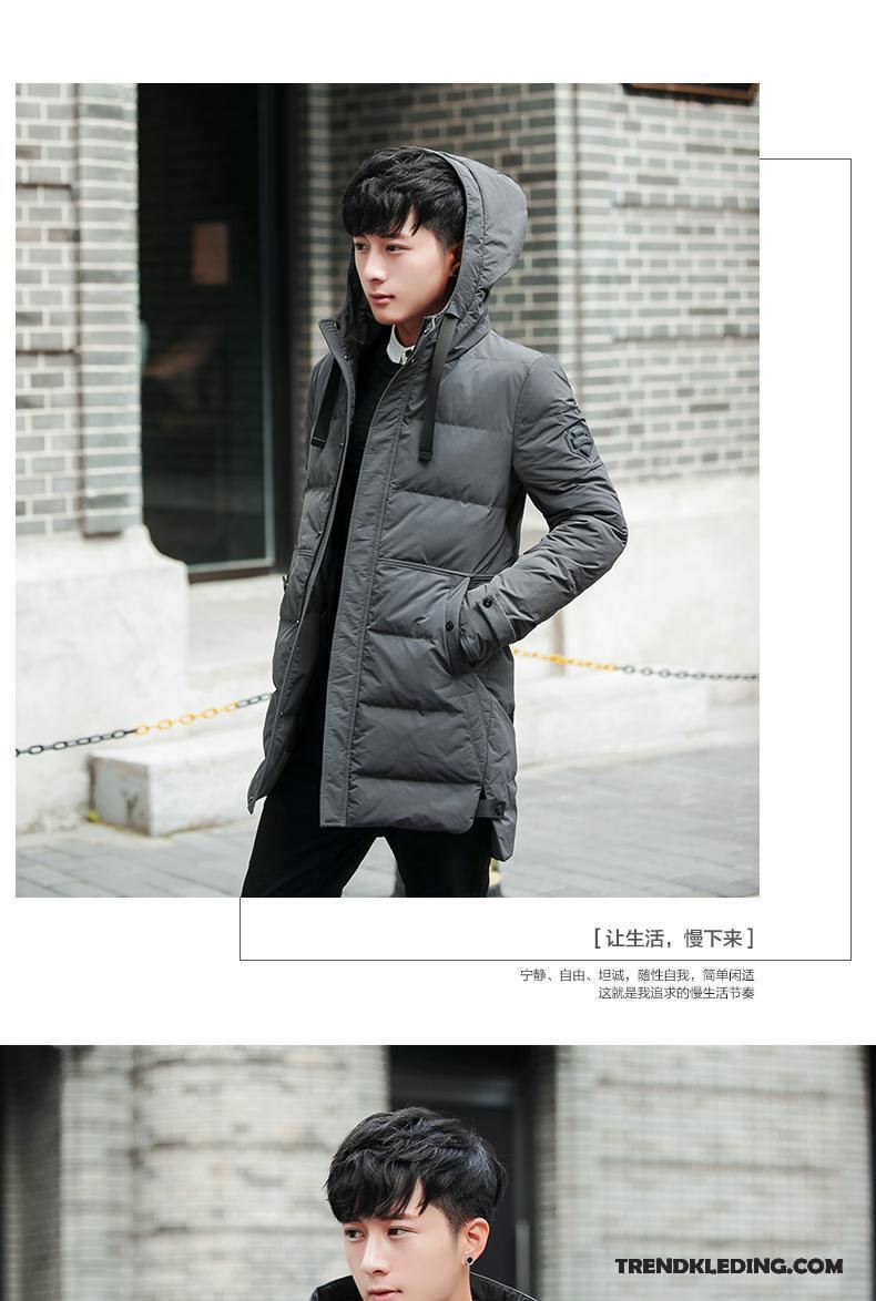 Katoenen Jas Heren Hoge Kraag Lang Winter Trend Mooi Dikke Groen