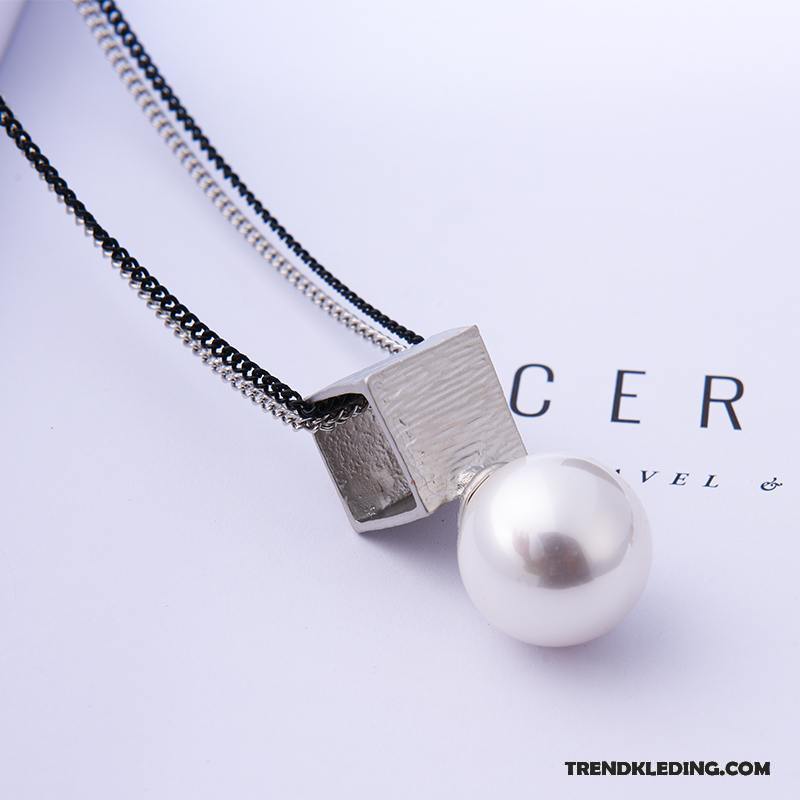 Ketting Dames Europa Trend Elegante Trui Lang Parel Wit