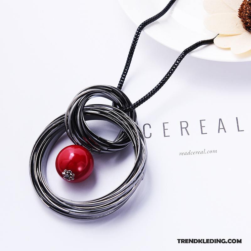 Ketting Dames Trui Schattig Dubbele Lange Strass Zilver Zwart