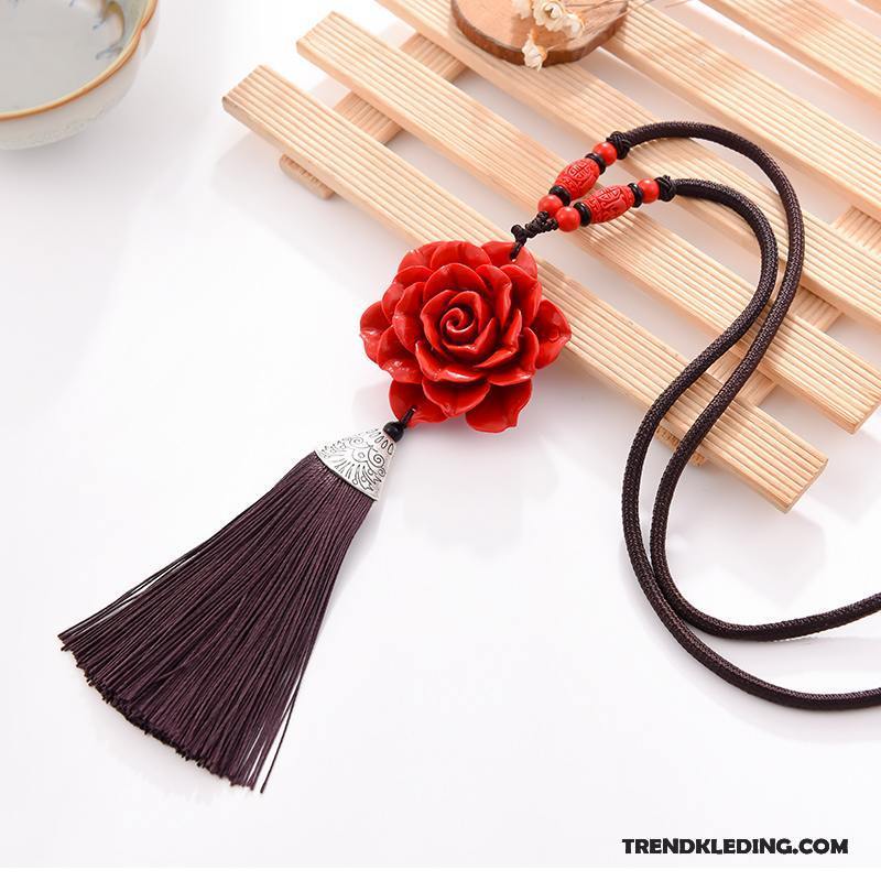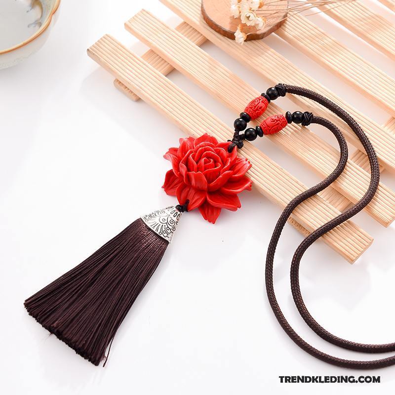 Ketting Dames Lange Mode Accessoires Winter Vintage Alle Wedstrijden Rood