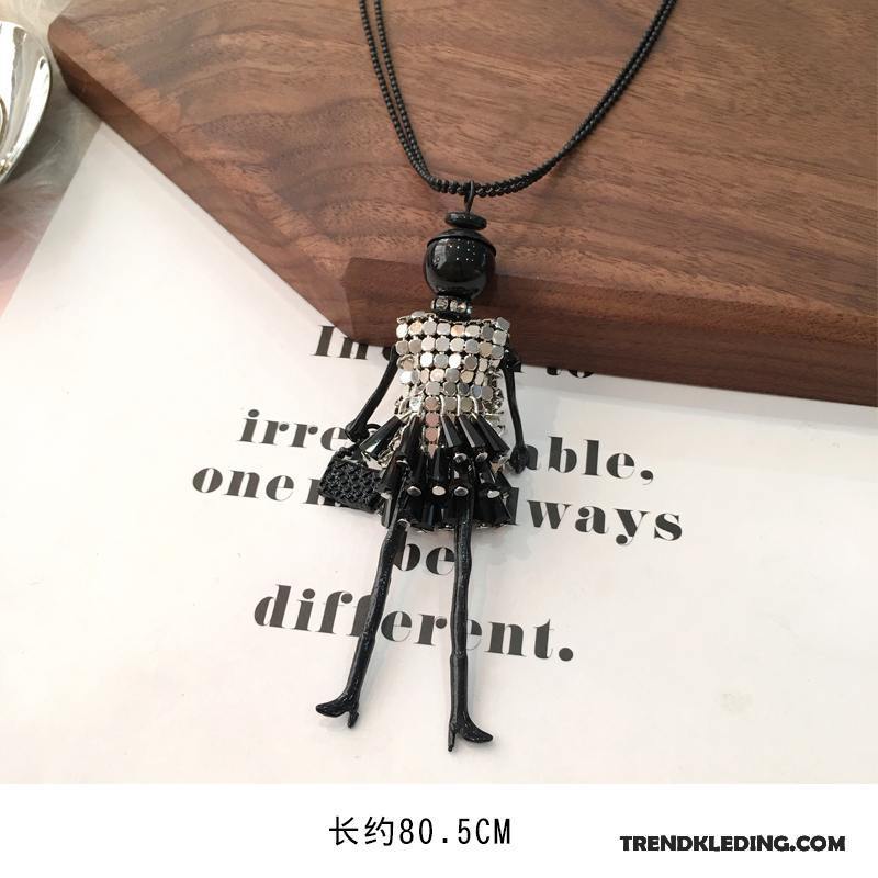 Ketting Dames Trui Schattig Dubbele Lange Strass Zilver Zwart