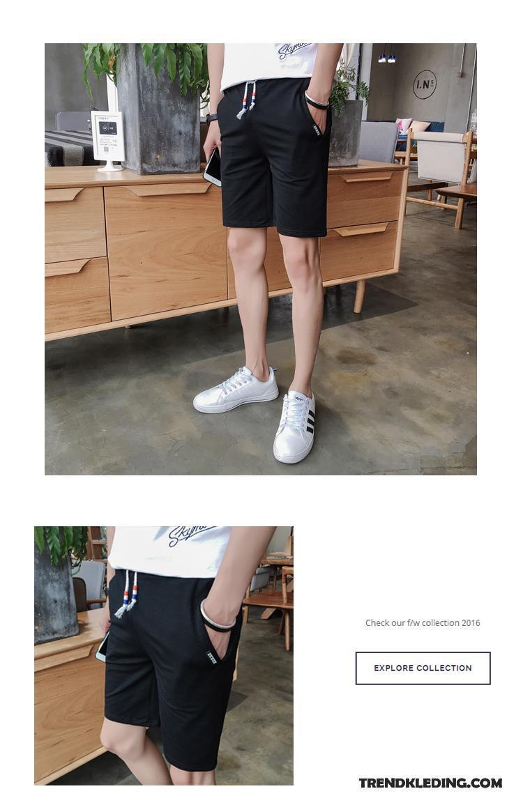 Korte Broek Heren Casual Trend Capri Broek Jeugd Slim Fit Dunne Effen Kleur Zwart