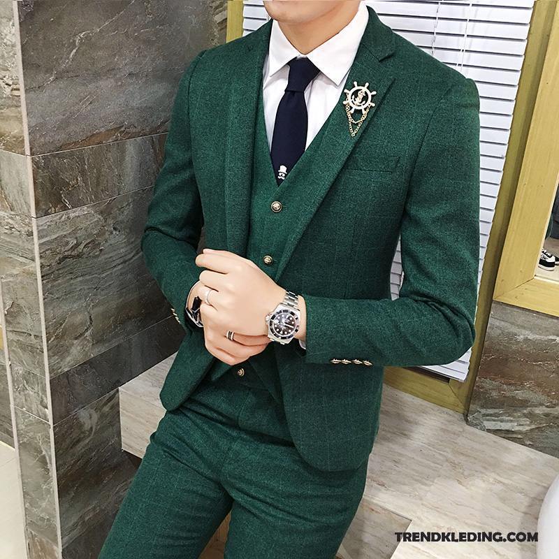 Kostuum Pak Heren Bruiloft Gastheer Blazer Mannelijk Nieuw Voorjaar Groen
