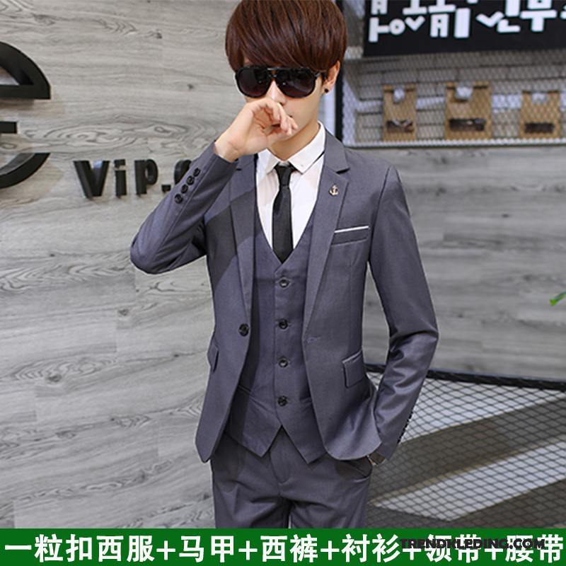 Kostuum Pak Heren Banket Jeugd Avondjurk Gastheer Bruiloft Bloemen Rood