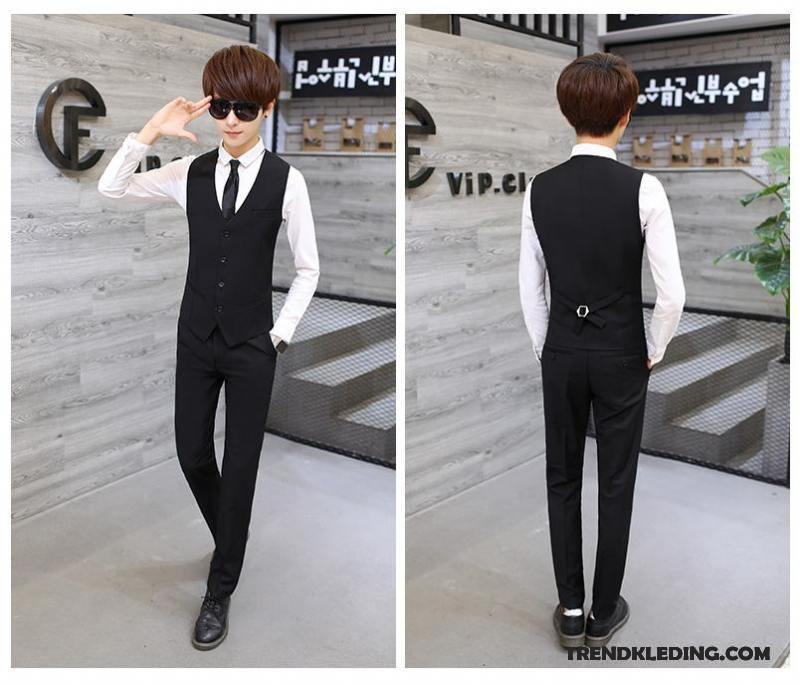 Kostuum Pak Heren Slim Fit Bruiloft Geklede Mannelijk Werk Bedrijf Zwart