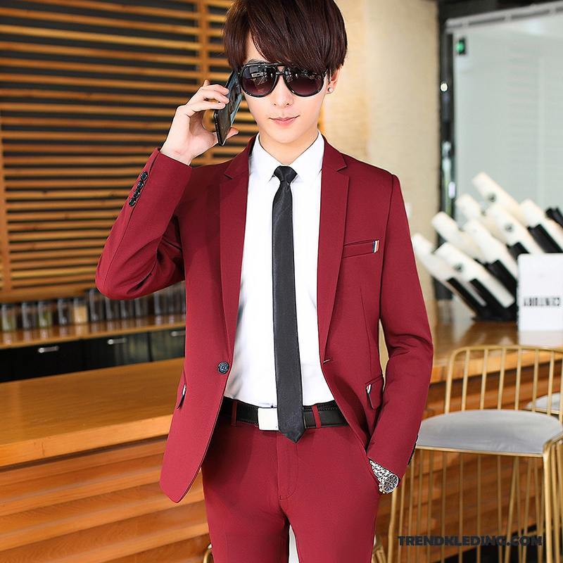 Kostuum Pak Heren Nieuw Blazer Slim Fit Bruiloft Geklede Bedrijf Rode Wijn