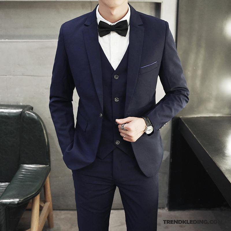 Kostuum Pak Heren Slim Fit Mooi Trend Blazer Student Herfst Blauw