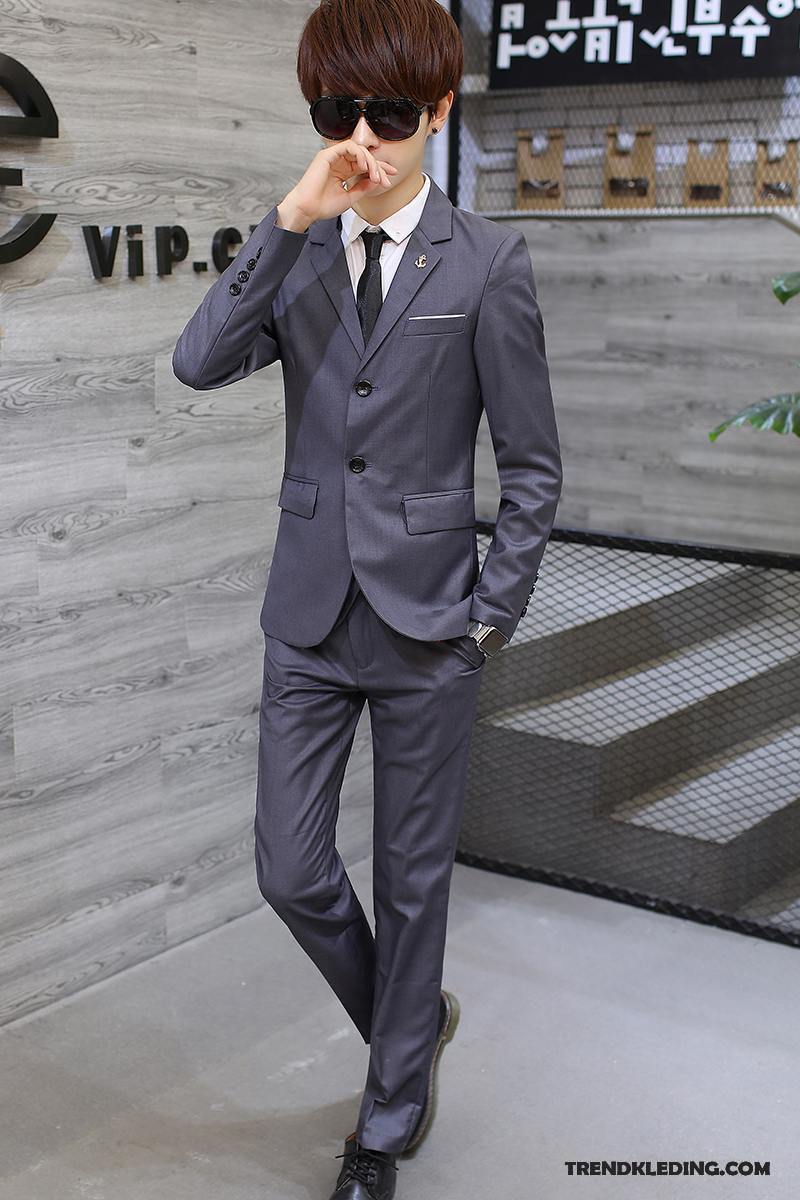 Kostuum Pak Heren Jasje Jeugd Casual Bedrijf Blazer Slim Fit Zwart