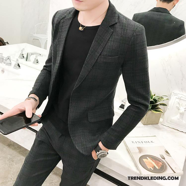 Kostuum Pak Heren Slim Fit Mooi Trend Blazer Student Herfst Blauw