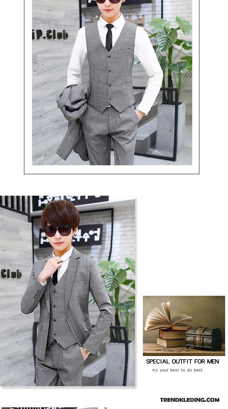 Kostuum Pak Heren Trend Mooi Casual Slim Fit Borduurwerk Jeugd Grijs
