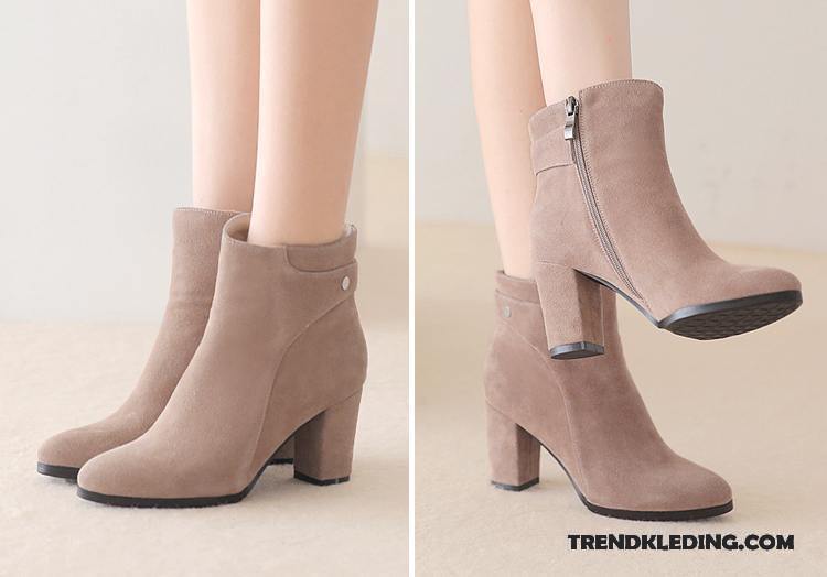 Laarsjes Dames Hoge Hakken Leer Vrouwen Korte Laarzen Schoenen Winter Kaki