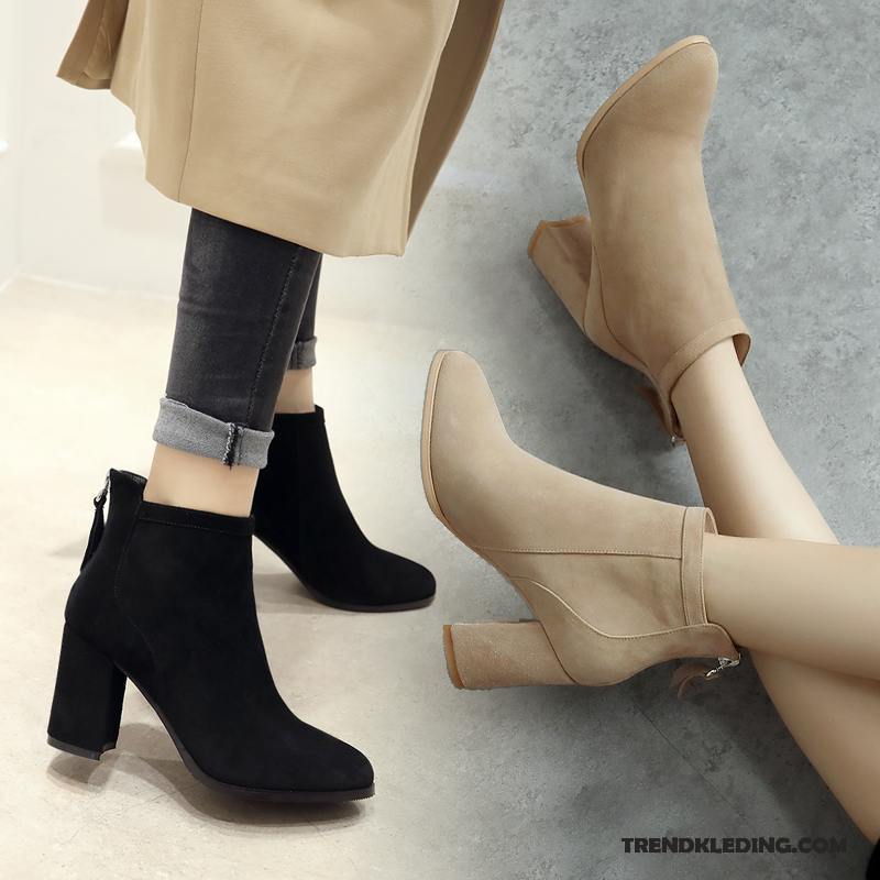 Laarsjes Dames Eenvoudige Comfortabele Ronde Kop Korte Laarzen Rits Winter Bruine