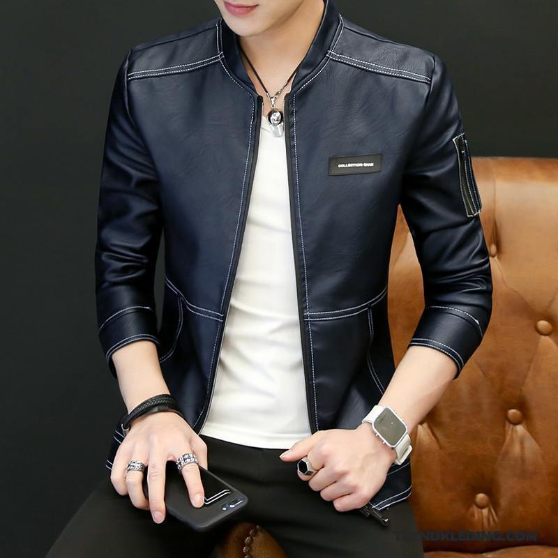 Leren Jas Heren Mannelijk Voorjaar Jack Dun Trend Hoge Kraag