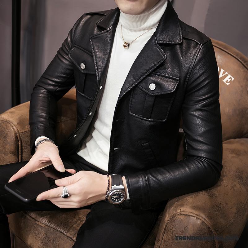 Leren Jas Heren Winter Kleding 2018 Nieuw Revers Dikke Jack