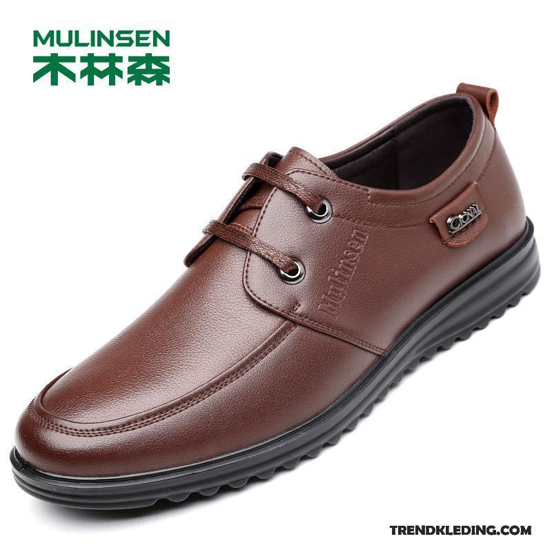 Leren Schoenen Heren Kant Echt Leer Trend Voorjaar Sleehak Casual Bruine