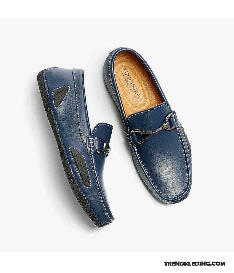 Leren Schoenen Heren Bedrijf Zachte Zolen Echt Leer Mannen Mocassin Casual Blauw