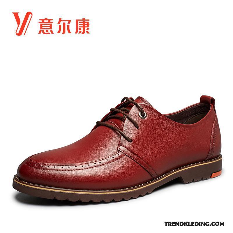 Leren Schoenen Heren Kant Echt Leer Trend Voorjaar Sleehak Casual Bruine