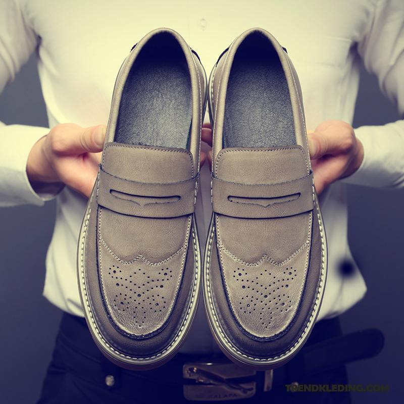 Leren Schoenen Heren Trend Zomer Skateboard Schoenen Brits Casual Alle Wedstrijden Bruine