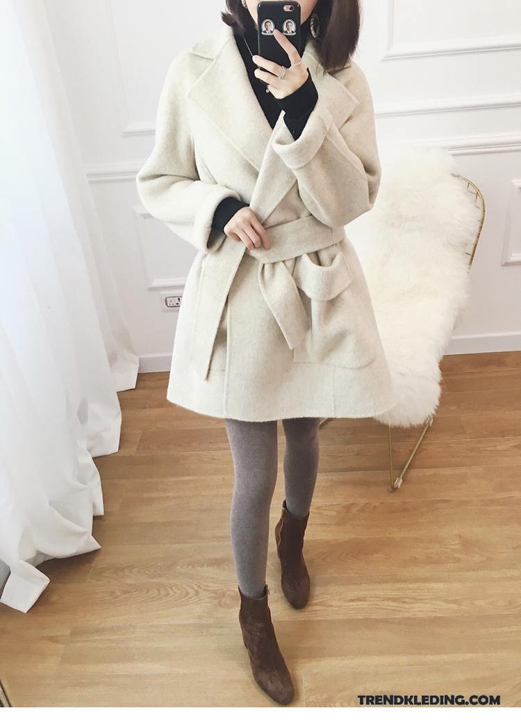 Mantel Dames Jas Wol Wollen Doek Nieuw Lang Overjas Mini Wit Beige