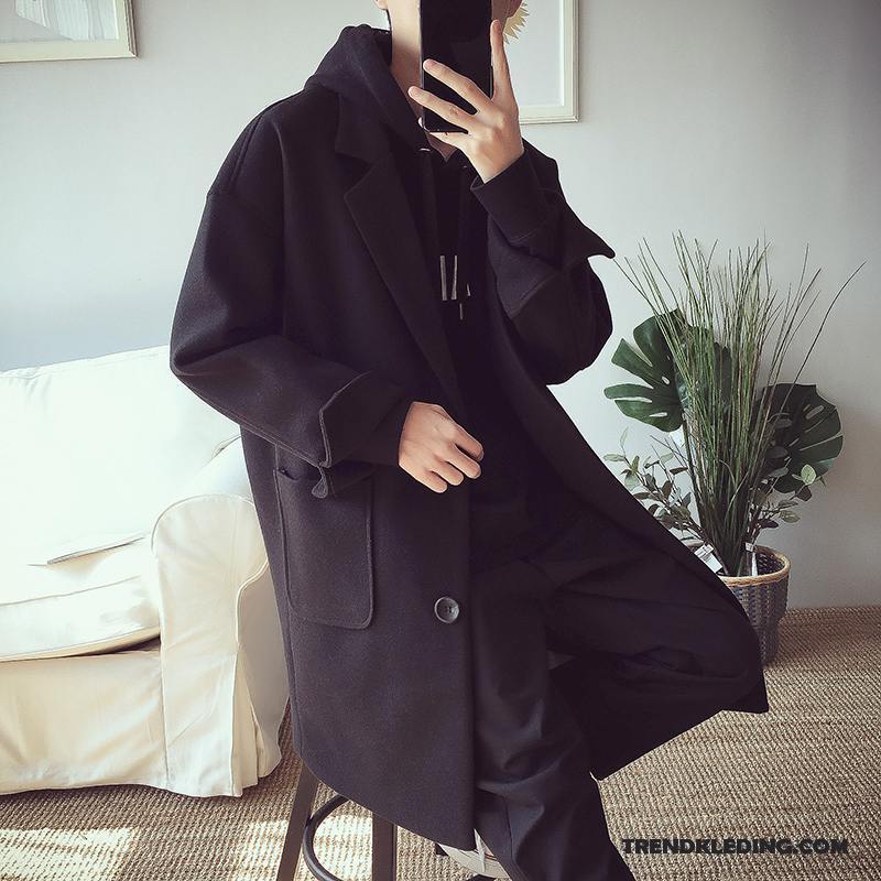 Mantel Heren Lang Jeugd Jas Wol Winter Trenchcoat Slim Fit Zwart