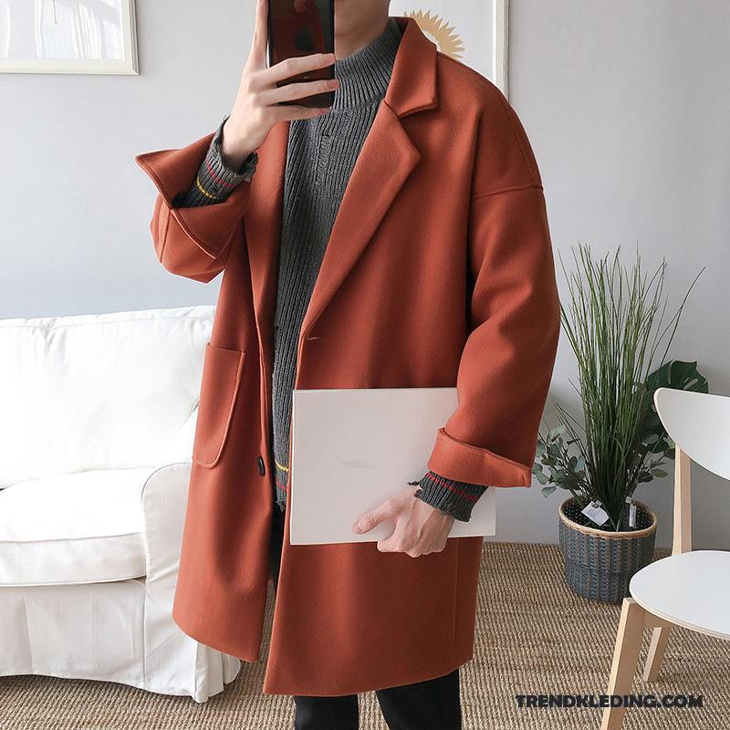 Mantel Heren Jeugd Casual Wollen Doek Lang Jas Wol Herfst Rood